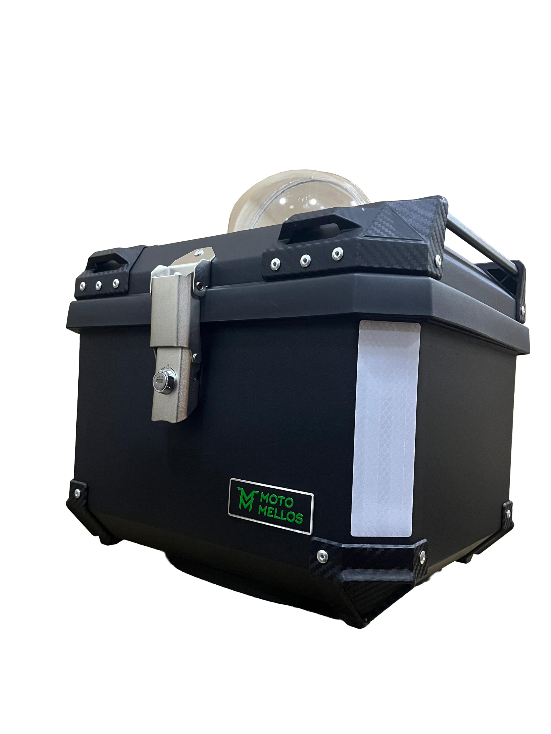 Este baúl negro de 45 litros de Moto Mellos, con reflectivos y cúpula superior transparente, fue creado para quienes llevan su moto al siguiente nivel. Es 100% impermeable, puedes guardar tus pertenencias sin preocupación por algún daño por agua o polvo. Adicional su cúpula no solo le da un toque futurista, sino que también permite transportar a tu mascota con seguridad y visibilidad, convirtiéndolo en la opción ideal para amantes de los animales que no se despegan de su compañero fiel.