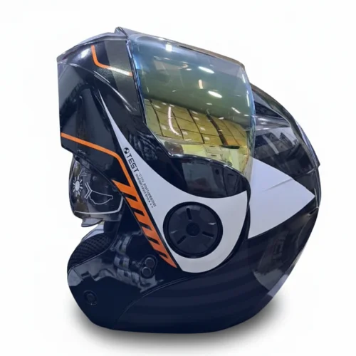 CASCO ABATIBLE ICH 3110 BUZZ NEGRO NARANJA VISOR DORADO XL