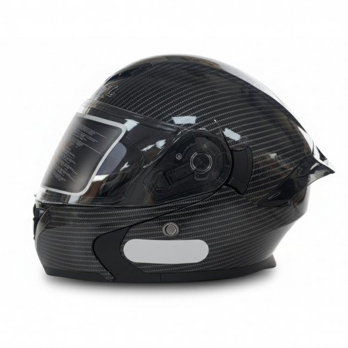 El acabado tipo carbono le da una apariencia moderna y elegante, mientras que el visor transparente (TR) proporciona una visión clara y protección contra el viento y el polvo. Su interior acolchado, desmontable y lavable garantiza confort e higiene, y el sistema de cierre micrométrico permite un ajuste seguro y rápido.