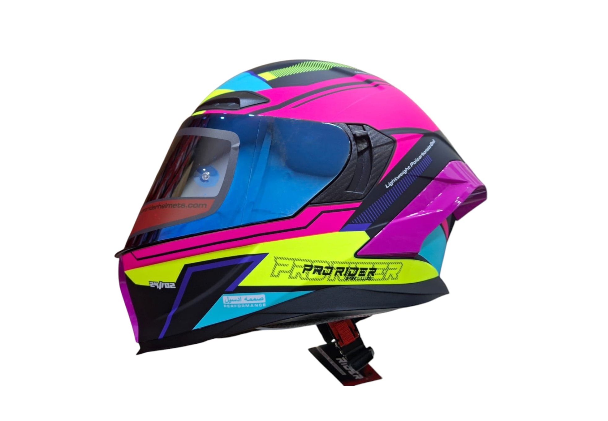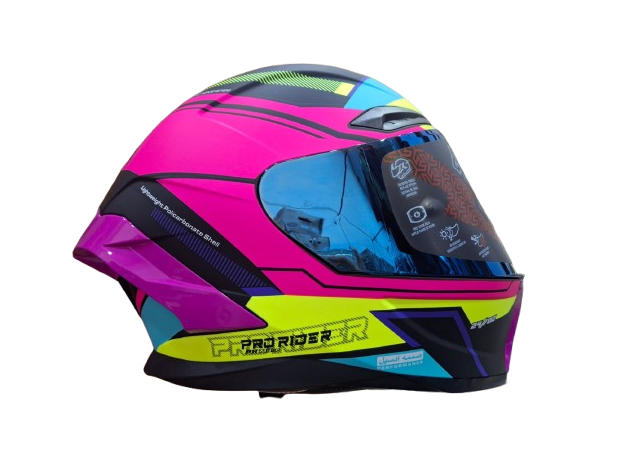CASCO INTEGRAL PRO RIDER 716SP WIELKI NEGRO / FUCSIA / AMARILLO VISOR IRIDIUM AZUL SPOILER FUCSIA