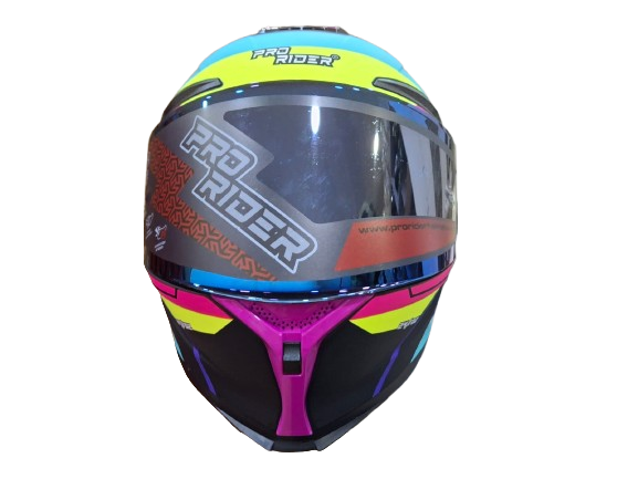 CASCO INTEGRAL PRO RIDER 716SP WIELKI NEGRO / FUCSIA / AMARILLO VISOR IRIDIUM AZUL SPOILER FUCSIA S
