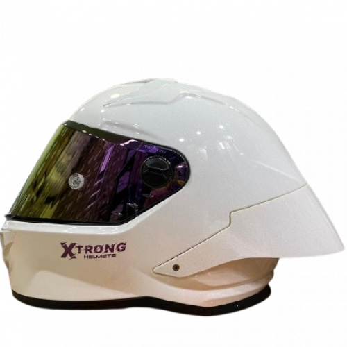 El Xtrong 352R1 Cristal Brillo con visor morado es un casco integral que combina protección, comodidad y un diseño sofisticado. Su acabado en blanco cristal brillante resalta con un look moderno y elegante, mientras que el visor morado espejado aporta un estilo deportivo y ayuda a reducir reflejos.